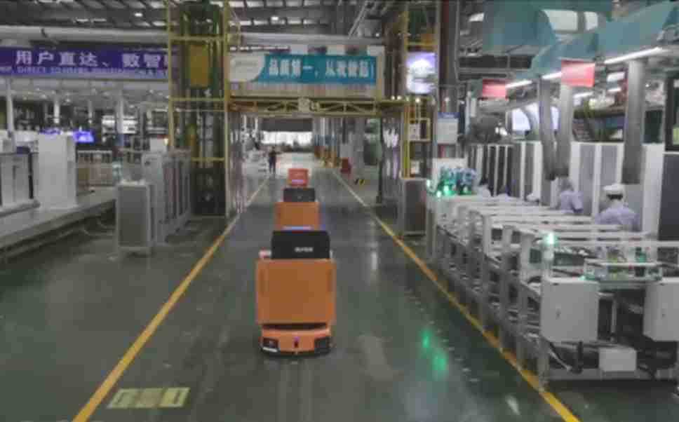 为车载冰箱物流配送打造的智能解决方案,,包含产中物流通过潜伏举升AMR搬运至线边,,,产后成品物流智能仓储,,,,流程包含产中物流智能齐套入库,,线边安灯叫料AMR智能配送至线边,,成品入库、、出库,,,,通过无人堆高车机器人,,,智能仓储管理替代人工作业管理,,,,实现更高存储、、更高效率、、、更具柔性化的解决方案。。。